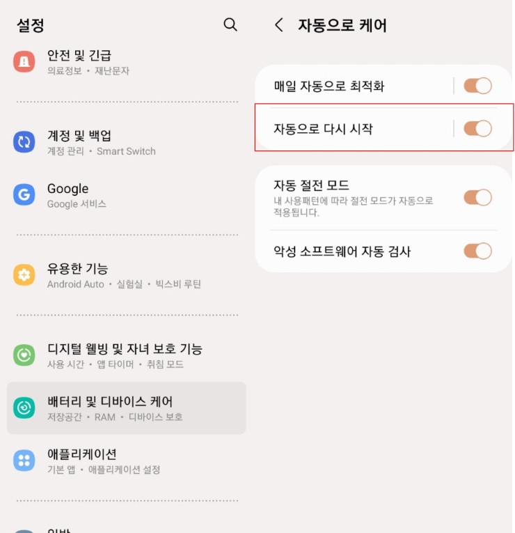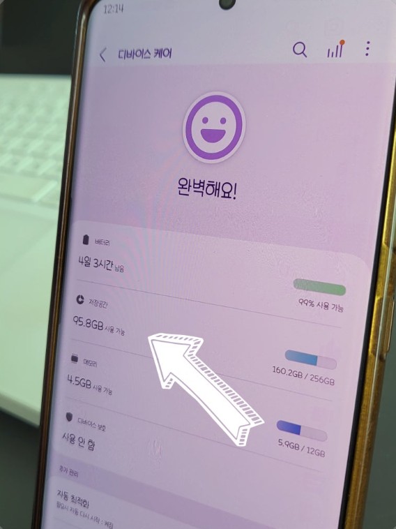 - (삼성) 설정 → 배터리 및 디바이스 케어 → 저장공간